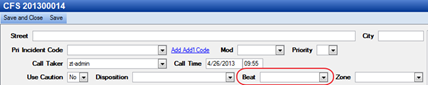 A Beat is a territory patrolled by an officer or deputy. The beat can be assigned to a specific unit and/or to a CFS.