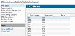 1. Navigate to System Admin > CAD > Beats. Already configured beats will display in the list and can be edited by double-clicking or deleted by highlighting blue and selecting Delete on the keyboard.