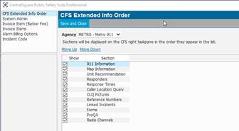The Extended Info window contains a series of sections that will provide you information on map, 911, and primary responders. You may determine the order these sections from this location.