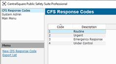 CFS Response Codes describe the type of response such as routine, urgent, under control, etc. The response codes are available on the Command Line and the CAD windows.