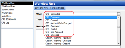 · The When field determines the event that causes the workflow to initiate (a trigger), there are multiple CFS workflow rules