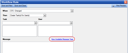 · The View Available Message Tags allow pre-formated messages to be sent based on information in the CFS (similar to paging)