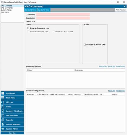 Permission: Admin – System – CAD Commands is required to modify or create CAD commands.