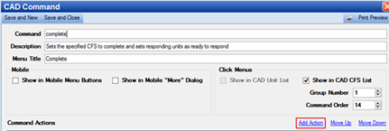 A CAD Command Action can be added to an existing command or to a stand-alone Twitter Command.