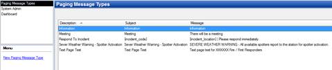 Paging Message Types define a specific paging message and automatically fill in the page’s subject and message field with default information.