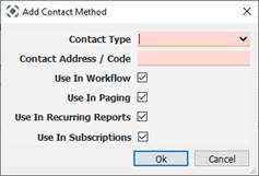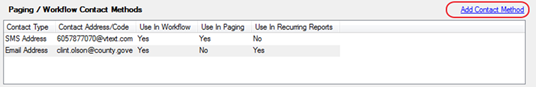 ● Contact Type: Email Address, SMS Address or CAP Codes