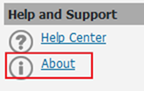 2. Click on the About link under Help and Support section