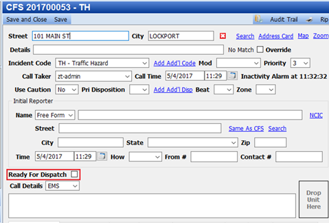 The setting provides a check box on the CFS which designates the calls ready for dispatch. The calls can be filtered on the CAD CFS List Window.
