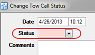 Tow call statuses are available on the tow call form which can be found on the Main Menu.