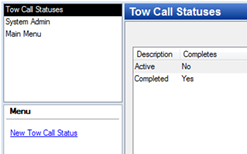 · Already configured Tow Call Statuses will display in the list and can be edited by double clicking or deleted by highlighting blue and selecting delete on the keyboard.