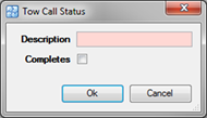 o Completes – If checked and the status is selected on the tow call, then it will complete the tow call.