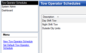 · Already configured Tow Operator Schedules will display in the list and can be edited by double clicking or deleted by highlighting blue and selecting delete on the keyboard