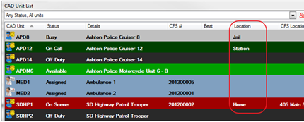 CAD Unit Locations are common locations of the CAD units such as the station, hospital or jail. The unit locations are available on the Command Line and the CAD Unit List window to describe the specific location of a unit. In Mapping, CAD Unit Locations can be mapped by connecting the location to a Station and a Common Address.