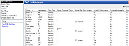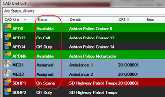 CAD Unit Statuses define the status of a unit i.e. available, on scene, off duty, assigned etc.