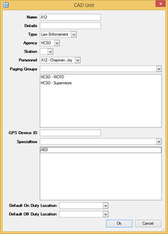 o Default On Duty Location – Unit’s location when assigned as On Duty