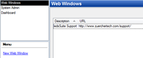 · Already configured Web Window will display in the list and can be edited by double clicking or deleted by highlighting blue and selecting delete on the keyboard